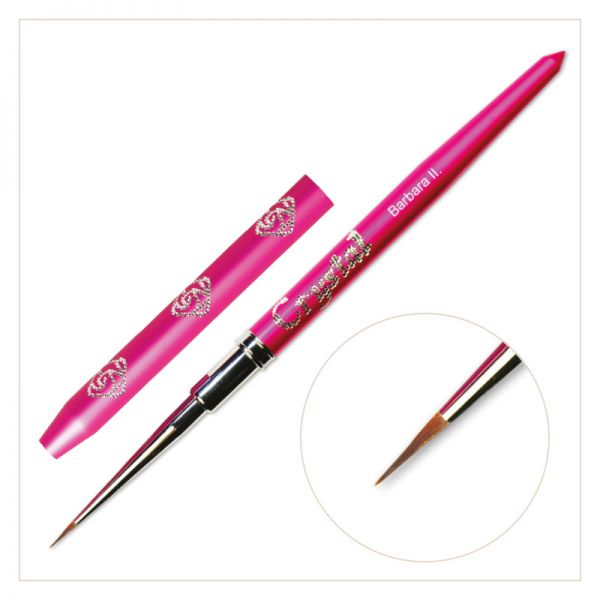 O Barbara II. Brush é um pincel de ponta fina e afiada com cerdas naturais, perfeito para trabalhos de nail art que exigem máxima precisão. Com 7,5 mm de comprimento e tamanho compacto, oferece controlo excecional, sendo ideal para contornos, sombreados e detalhes artísticos delicados.